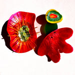 Son de resina epoxy pintada a mano con herrajes remachados de plata.