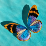 Las Euphaedra Neophron son una especie originaria de Sud África. Miden cerca de 6cm de envergadura en la vida real. Las hay en diferentes tonalidades. Nosotros elegimos las Neophron por la combinación de violeta tornasolado con naranja y un poco de dorado.